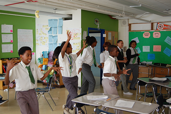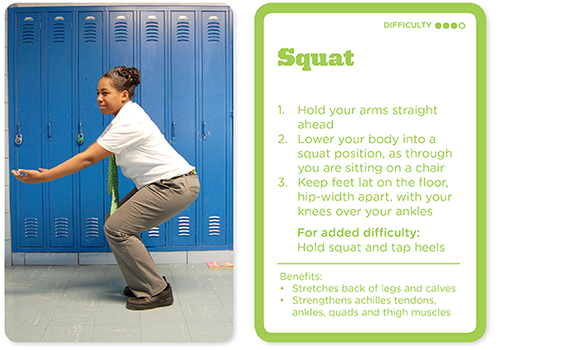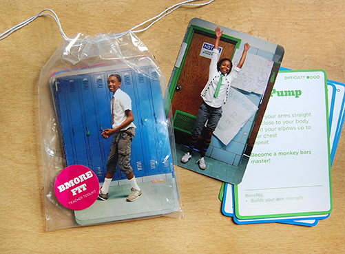 The BMore Fit Teacher Toolkit is a deck of exercise cards for Baltimore City Public School teachers to use in their classroom to keep students focused and improve their academic performance. When teachers notice that students are losing focus, they can pull out their deck of cards and pause the class for "BMore Fit Time," five minutes of quick and fun exercises to reset classroom dynamics with relaxed and energized students.