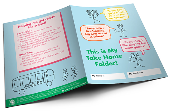 In partnership with Experience Corps and Baltimore City Public Schools Early Learning office, Wide Angle Youth Media's Attendance & Design Team created a take home folder to communicate the importance of attendance, helpful tips and tricks for getting to school on time, and monthly learning objectives with parents and Pre-K and K students. Folders were distributed as an initial pilot to select BCPS teachers during the 2013-2014 school year.
